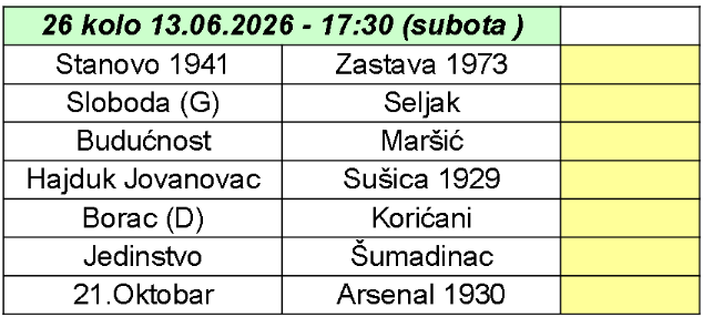 PRVA GRADSKA LIGA RASPORED
