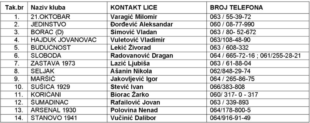 Komesar za takmičenje gradskih liga : Berečić Ivan : 064/615-48-57